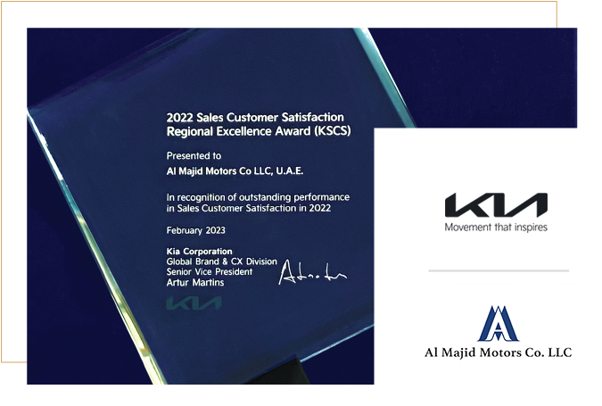 Kia Motor Co. recognizes Al Majid Motors with the Best 2022 Sales Customer Satisfaction Award.